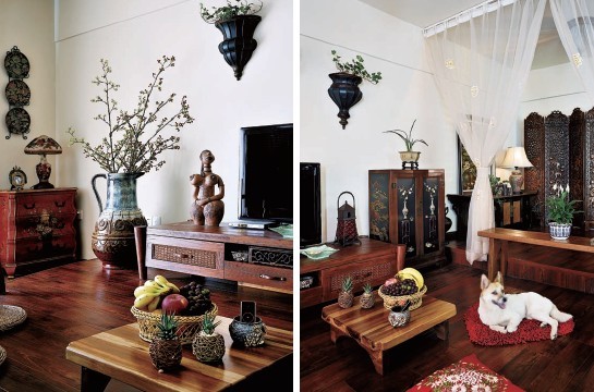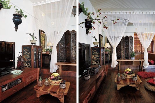 休閑客廳設計師取消了傳統意義上客廳的布置,被墊高的客廳做了小小的躍層處理,讓空間變得錯落有致,富有獨特的藝術氣息。另外將客廳設計成一個可臥可躺的休閑區,坐臥兩用的創意客廳,休閑是主題,因此家具無需太多,但是需要花費心思精心挑選,半包圍的帶扶手空地,隨意擺幾只軟包坐墊,好似公園里的長廊般悠閑,困倦了,紗簾后的榻榻米張開懷抱擁抱你。