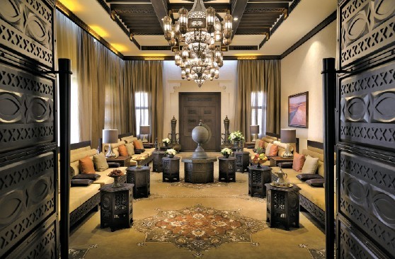 每個單間、別墅和套房均可俯瞰沙漠景觀,將華麗的室內裝潢與戶外美景融為一體。洗浴會所裝飾設計豪華典雅,以土褐色為主色調。所有的客房均設有可通向露臺的滑動式玻璃門。