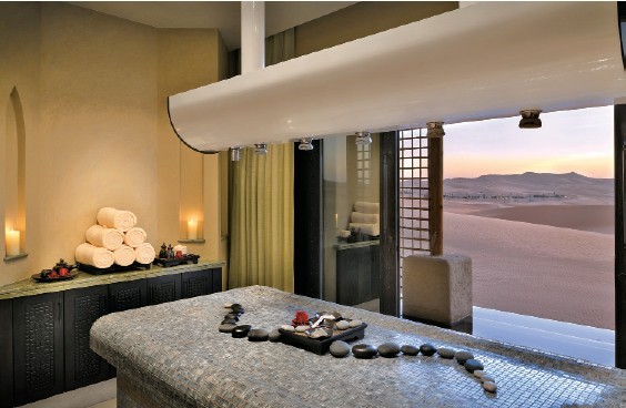 探索沙漠一整天后,你可以在被日光浴椅子和棕櫚樹圍繞著的室外游泳池邊享用茶點,也可以在Anantara Spa 享受舒適的按摩或者嘗試地道的土耳其浴。水療中心位于沙漠深處,隱藏在靜謐的庭院之中,潺潺噴泉和芬芳的空中花園點綴其間。
