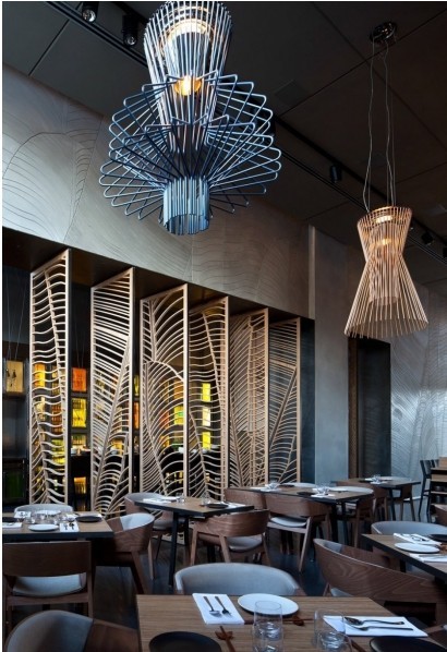 內部裝飾沒有刻意的選擇中式會所設計元素,然而這種亞洲氣息卻能油然而生,餐廳隔斷和旋轉門以及燈罩都使用純木色,在喧囂的都市中能在這樣一處安靜地獨享美食,何不樂哉。